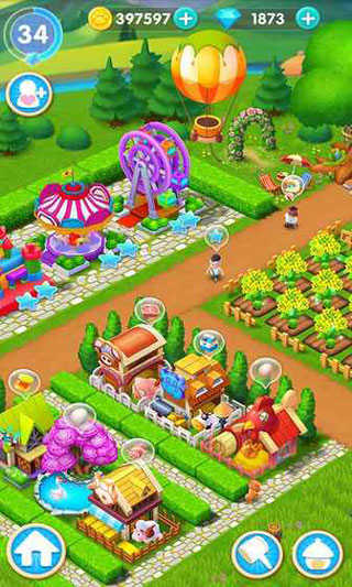 土地边缘浮现绿色光晕时,代表可建造新设施,消耗金币即可落成小木屋或秋千架,蓝钻则能缩短等待时间,让家园更快焕然一新。