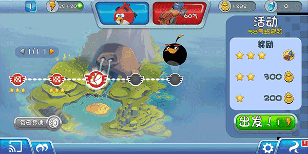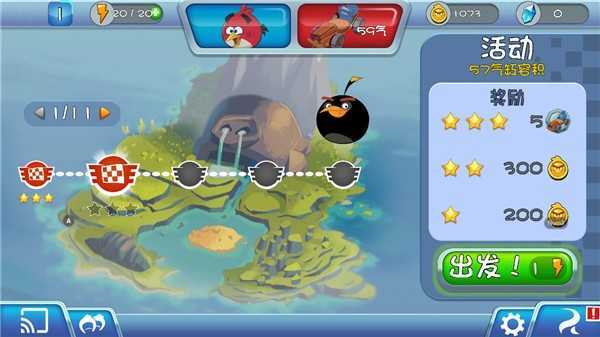 进入愤怒的小鸟卡丁车后,长按屏幕上的小鸟角色蓄力,松手瞬间即完成弹射起步,卡丁车随之冲出起点。