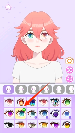 界面下方会弹出造型工具栏,里面有数十款颜色各异的美瞳样式可供选择。