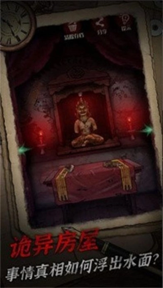 1、阴森场景:可以自由探索设计得阴森的游戏场景,随意收集线索与道具,解开悬疑类的谜题;