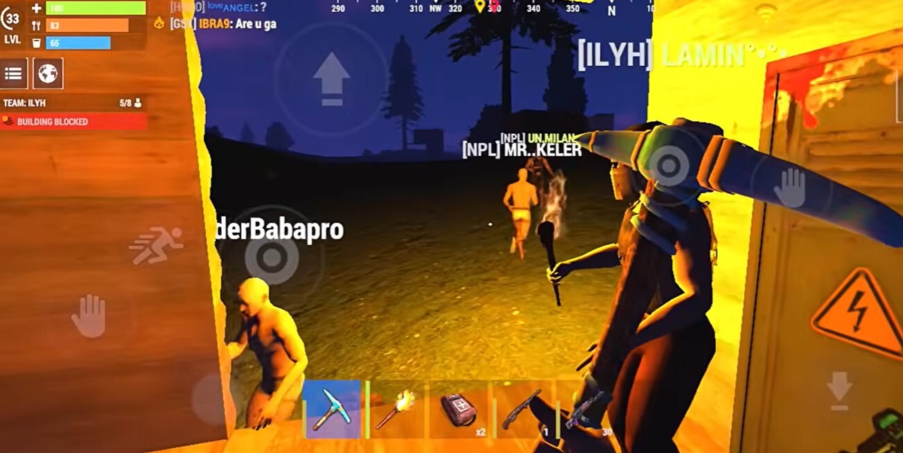 使用木头和石块建造简易房屋,保护资源和角色安全