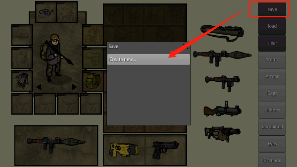 完成整套造型后,点击界面顶部“save”按钮,在弹出菜单中选择“create new”,即可将当前配置永久存档。