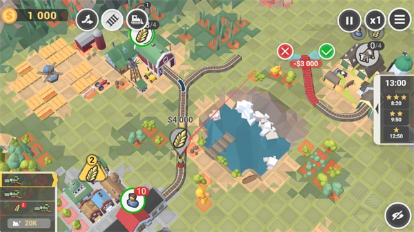 核心玩法围绕铁路规划与调度策略展开,玩家需要依据资源分布和工业节点的位置来规划最优运输路线,在运输需求和线路承载能力之间找到平衡,这一过程十分考验空间思维与统筹能力。