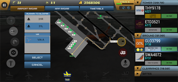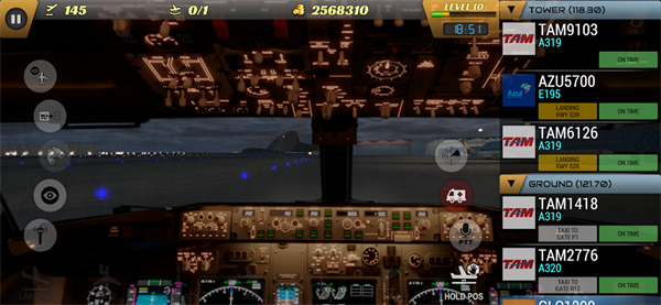 游戏提供多维度观察方式,包括塔台俯瞰、候机大厅全景、飞机外部环绕、驾驶舱第一人称及客舱内部视角,不同场景带来截然不同的操作体验。地勤车辆会在航班落地后自动响应,推出牵引车、加油车、登机梯等设备,细节表现细腻。每一次调度都需权衡时间、距离与气象条件,误判可能导致碰撞或强制复飞,累计失误将直接终止当前任务。随着成功起降次数累积,机场等级随之提升,同时迎来更密集的航班流与更复杂的天气状况。