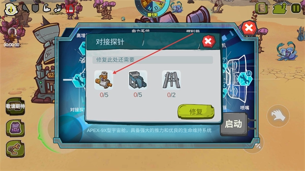 进入飞船部件界面后,点击相应的部件位置,就能打开该部件的修复操作界面。
