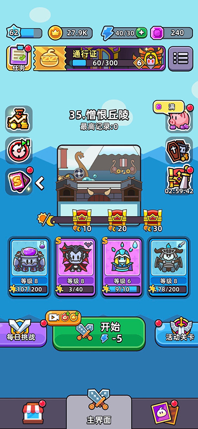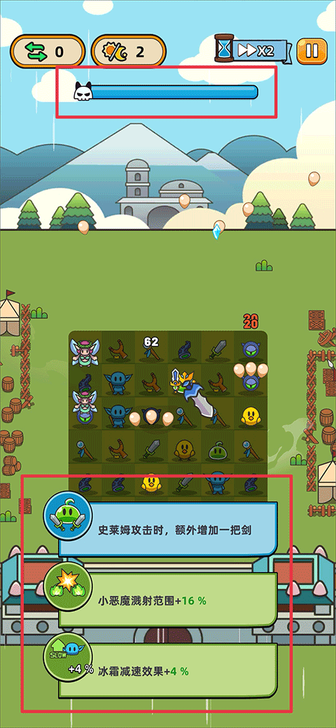 5、我方英雄成功抵挡来袭的敌人后会获得分数,当上方进度条填满时,也能解锁技能选择功能;