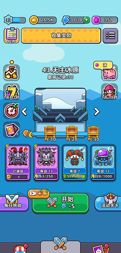 选择德古拉时优先点出一二技能,其技能范围直径为七格,同时搭配四技能可额外增加一轮攻击次数。携带新星技能时,优先选择一四技能来扩大冰冻范围,再搭配二三技能提升冰冻触发概率与减速效果。使用毒液机器人时,优先点选一四技能,通过扩大范围和延长晕眩时间实现全屏攻击,附加二技能还能为周围四格范围内的目标增加25%的伤害。小丑则优先升级三四技能,通过叠加易伤状态为主要输出角色创造更好的输出环境。目前版本中,只要不遇到免疫暗属性伤害的敌人,德古拉基本可以轻松应对所有关卡。