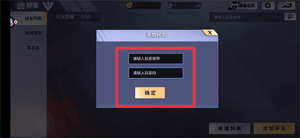 输入目标信息后提交申请,对方收到通知并确认通过后,双方即建立双向好友关系,后续可随时查看战绩、共享战报、同步上线状态。