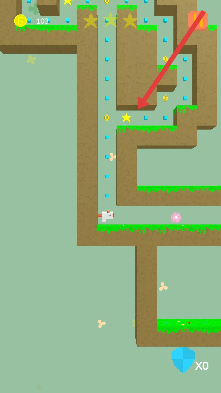 控制角色在草地场景中前进,顺着既定路径收集星星和金币,注意地形的变化,规划好移动路线以获取更多资源。