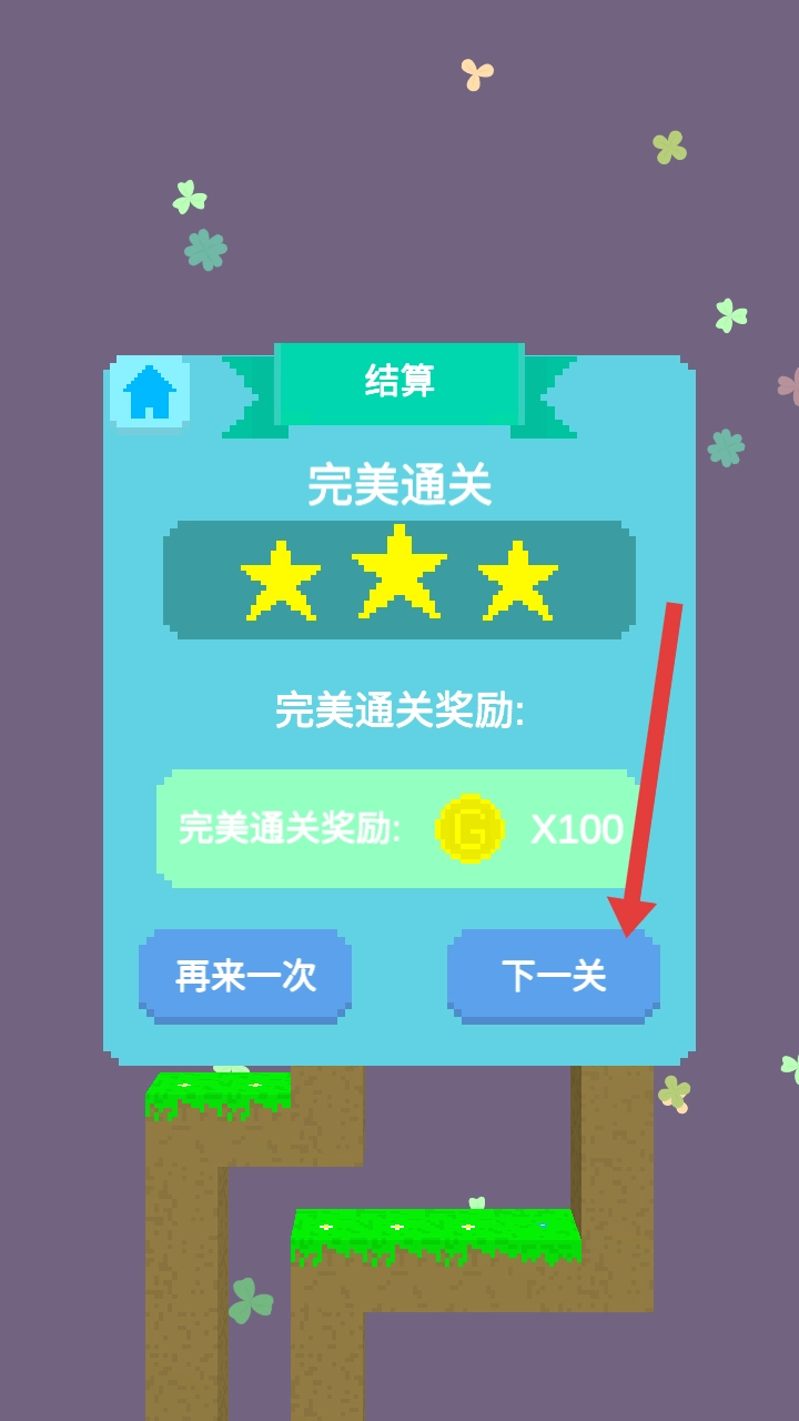 当你把所有星星都收集齐并完美通关后,就可以点击界面右侧的下一关按钮,这样就能领取100金币的奖励,同时开启新关卡的挑战啦。
