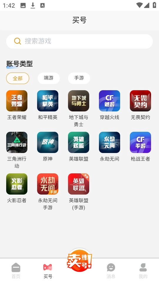 进入首页后,我们便能看到各类热门游戏的账号。