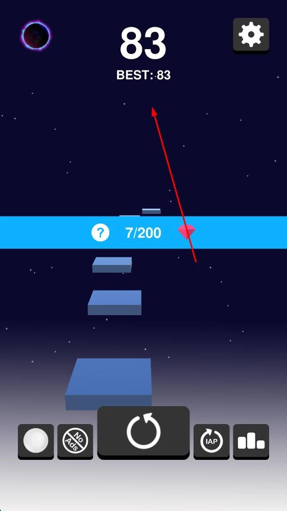 精准跳跃的核心玩法是:通过轻扫屏幕来操控弹球的跳跃方向和力度,保证弹球能落在方格上且不会从边缘脱落,从而积累跳跃次数和基础积分。