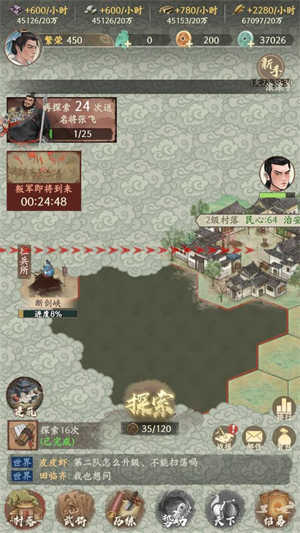 通过反复开拓新地域积累铜钱、粮草与将魂,逐步扩充武将阵容,将零散据点连成稳固的势力网络。
