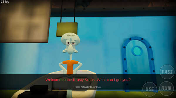 恐怖蟹堡王是一款沉浸式惊悚冒险,玩家将踏入被诡异力量侵蚀的蟹堡王餐厅,在海绵宝宝熟悉却扭曲的世界里展开求生之旅。这里灯光昏暗、走廊延伸无尽,墙壁渗出不明黏液,广播里断续播放着变调的欢乐旋律。你需要仔细搜寻厨房、收银台、储藏室等区域,拼凑散落的日记残页与破损录像带,逐步揭开蟹老板异变背后的黑暗实验真相。