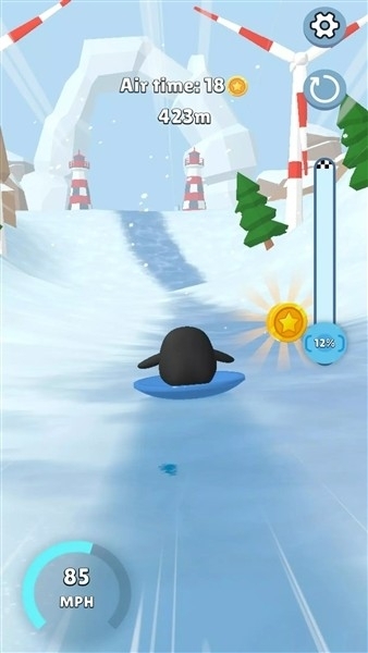 2、每一次滑行都是全新的体验,树木与冰面的分布毫无规律,能量提升道具的位置也不固定,这使得玩家每次游玩时都能感受到满满的新鲜感。