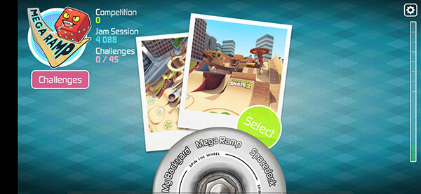 2、进入游戏以后玩家需要选择要体验的游戏场景,不同场景中设置了不同的道具以及障碍,因此游戏的难度也不尽相同。因此除了一些基础的场景之外,其他的场景都需要玩家解锁方能体验。非常有趣的是游戏的场景中并没有任何一个人存在,当玩家将两根手指放到滑板上之时,那个奇妙的代入感,就好像小时候用手指来扮演小人的情景。而再回忆起游戏的操作,一切都那么“真实”。
