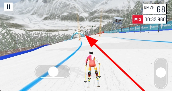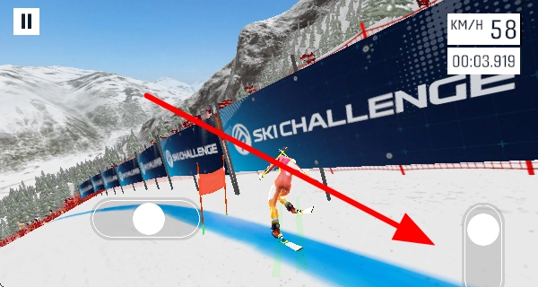 在滑雪时,你可以通过用手指在屏幕上向左或向右滑动,来操控角色在赛道上左右移动,避开各种障碍。