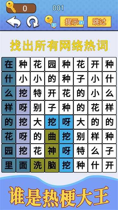 《汉字疯狂挑战》是一款以汉字文化为核心,巧妙融合网络热门元素与逻辑解谜玩法的高能休闲游戏。它不仅考验玩家的观察力与联想能力,还能在循序渐进的关卡中,潜移默化地提升你的汉字素养——无论是字形结构的拆解、谐音梗的趣味运用,还是成语典故的回顾、流行语的演变探索,每一关都实现了思维与文化的精彩碰撞。游戏难度呈螺旋式上升,玩法更是丰富多变,越往后越让人沉浸其中、欲罢不能!