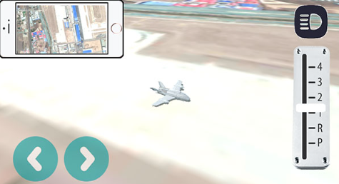 切换到飞行模式后,通过推动档位按钮来操控起飞,左侧的地图可用于辅助导航。