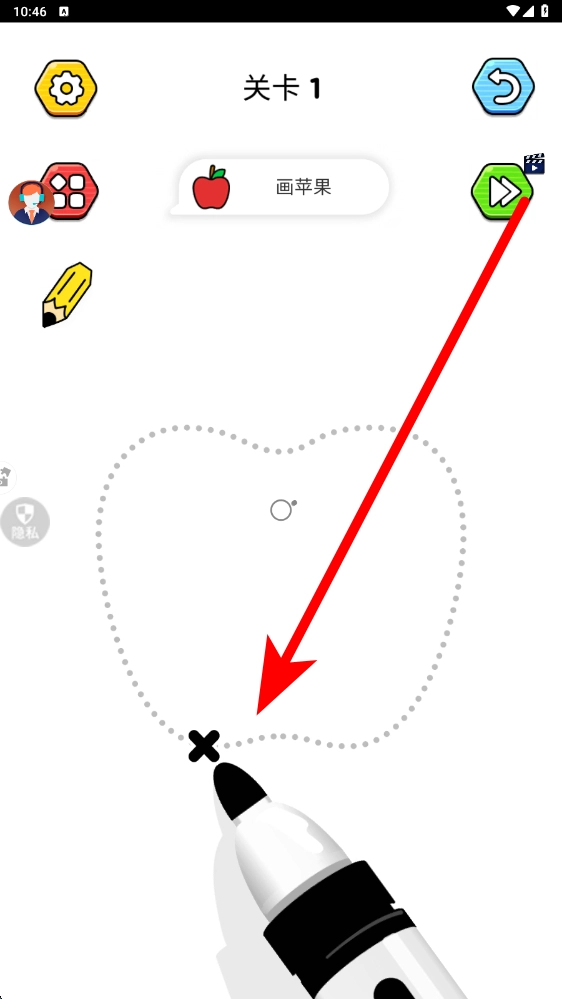 打开游戏进入关卡后,会看到提示需要绘制苹果的绘画指引,你可以借助画笔工具,依照屏幕上的虚线轮廓进行描摹,一步步勾勒出苹果的外形,从而开启这段绘画创作的体验。