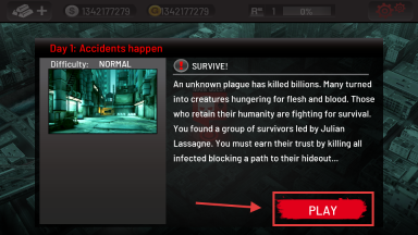 1、在任务界面点击【PLAY】按钮,启动末日生存任务,你需要通过击杀感染体来赢得幸存者的信任。