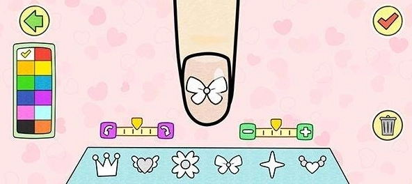 夏莉的美甲装饰运用了卡通风格,整体视觉效果十分惬意,进行美甲绘制的过程也很放松,是一款相当有趣的游戏。