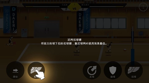 3、连续点击两次翅膀按钮即可完成扣球动作,第一次点击会触发跳跃,第二次点击则会执行扣球。