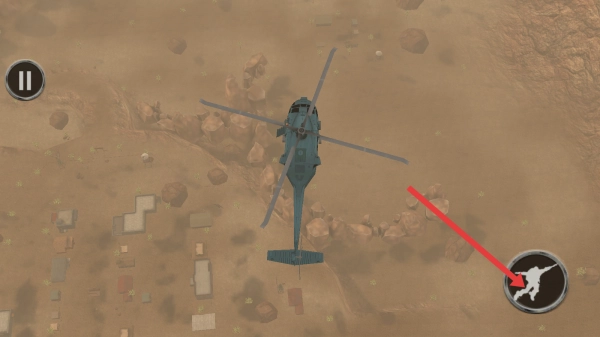 通过左下角的虚拟摇杆来操控降落伞的飞行轨迹,引导角色平稳降落,落地后留意周边环境,确认是否处于安全状态。