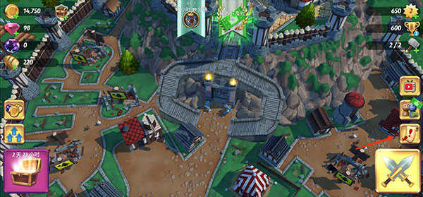 6、除了任务系统,防守也是游戏的重要部分。将视角移至城堡外围,便可查看可建造的炮塔位置。