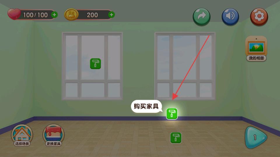 2、根据提示点击购买家具按钮,进入家具相关的操作环节,可挑选或购买家具来装饰涂色小家,丰富场景内容。