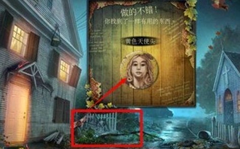 往前走,点击栅栏,进入寻物游戏。结束以后得到黄色天使头。