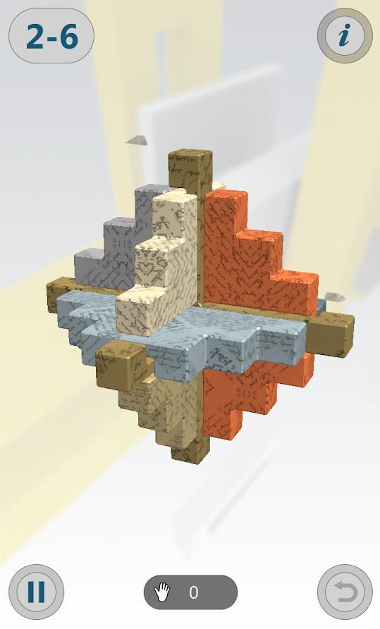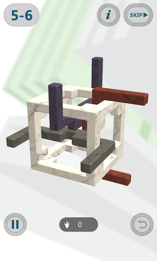 游戏过程中,屏幕下方正中央会显示已移动的次数。若想通关拿三星,需要较短耗时与较少移动次数的配合;后续关卡若想积累更多星星,则可能需要重复挑战多次才能达成。《鲁班锁》是一款休闲益智,解开巧妙啮合的榫卯结构,游戏过程中你一定会感叹匠人们的奇思妙想。3D画面孔明锁,5个挑战章节,蕴含中国古代匠人精神和工艺的智力游戏,在内部环环相扣的锁需要玩家一层一层解开,暴力拆卸在这里没有用,唯有找到方法才能开锁,鲁班锁游戏训练你的思维能力,消磨闲暇的时光。