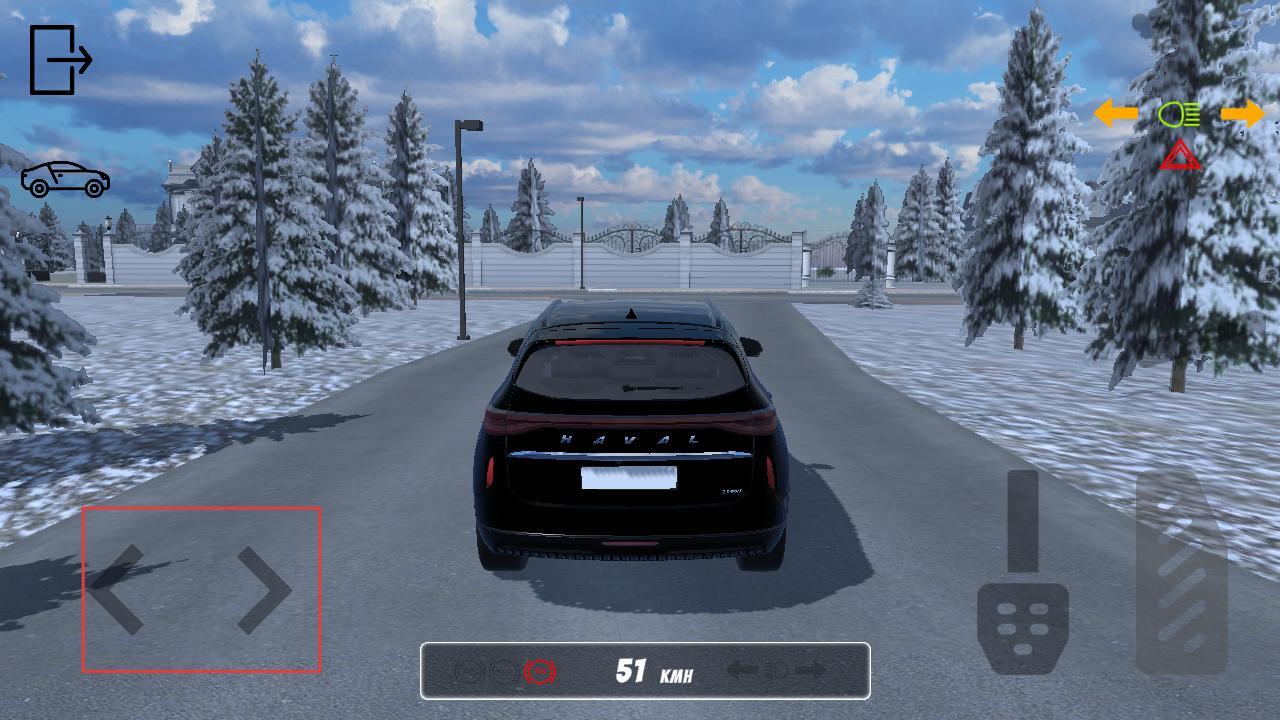 3、行驶过程中,通过左侧的方向按钮,控制汽车的行驶方向,在不同地形场景中平稳驾驶。