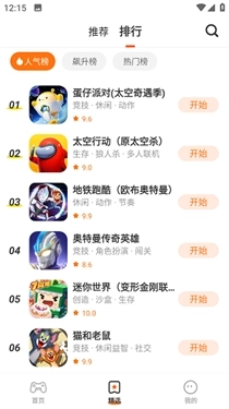 4、进入排行榜能够查看平台近期热门的游戏,这些游戏都能轻松游玩。