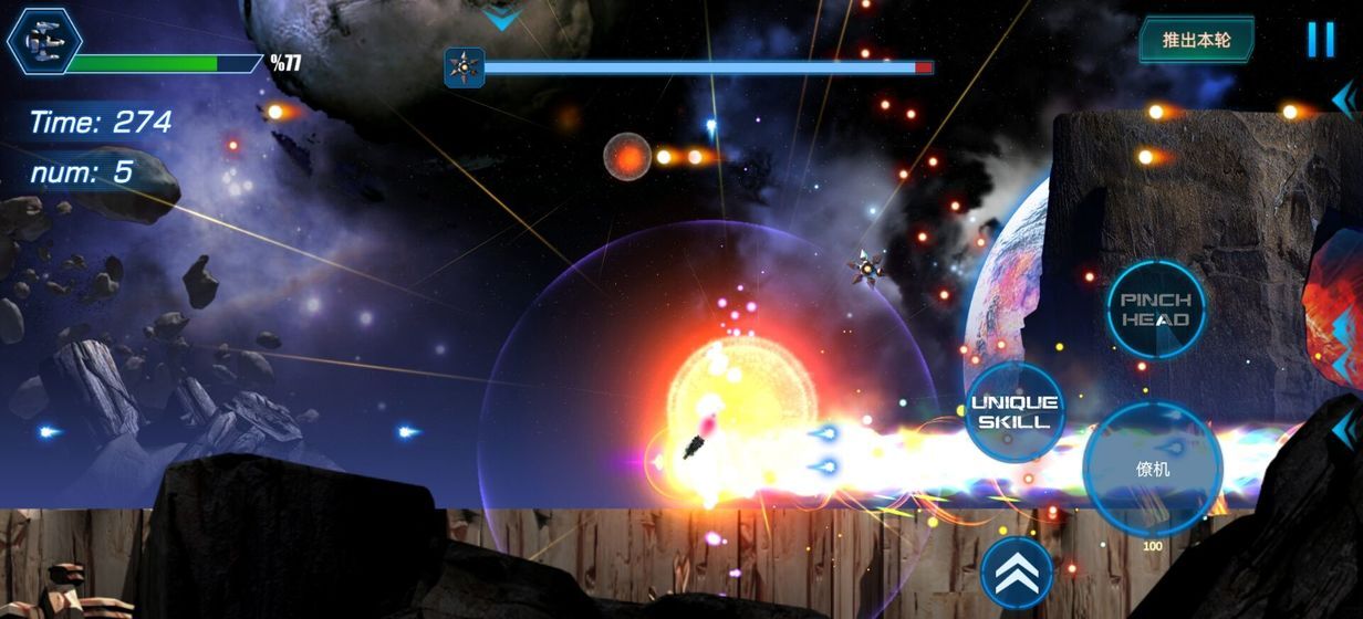 1、游戏内僚机和战机伤害可以无限提升,各种强力技能,收集僚机秒杀boss。