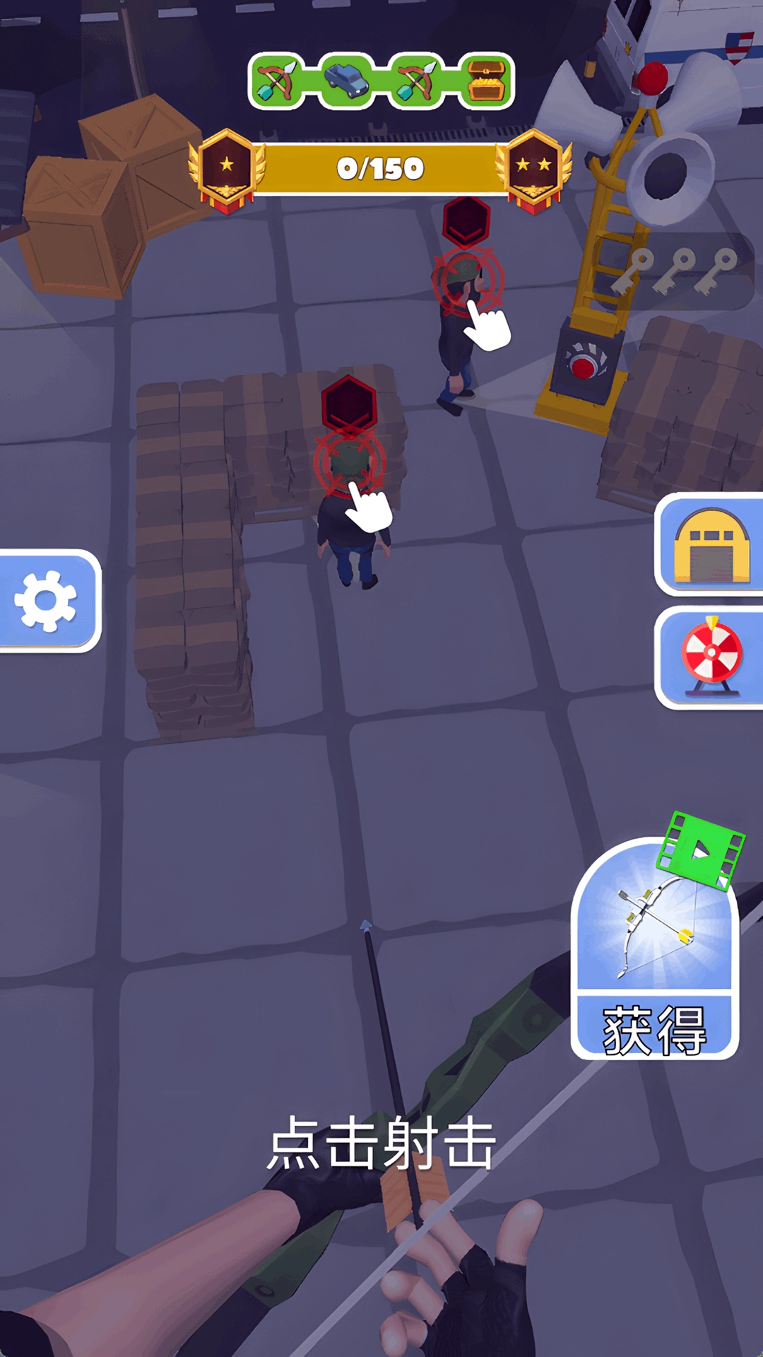 点击屏幕瞄准敌人后射击;