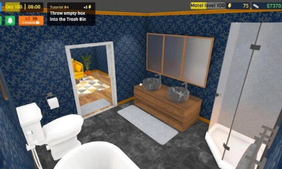 3D建模搭配细腻画面,有效增强了玩家的代入感,让大家能身临其境地体验旅馆运营的点滴细节。游戏对顾客行为与市场动态进行了真实模拟,进一步丰富了经营策略的深度,也让整个过程更具趣味性。