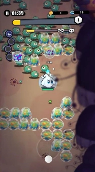 玩家在关卡中操控干细胞角色进行移动与战斗,可自动或半自动攻击敌人,感受大范围清场带来的爽快战斗体验。