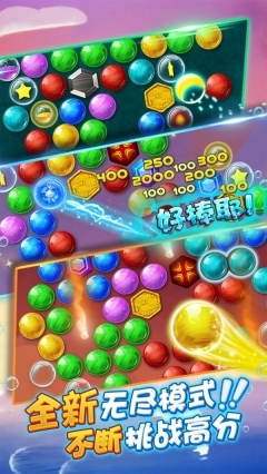 单次消除的气泡数量越多,得到的分数就越高,并且能够触发部分道具。