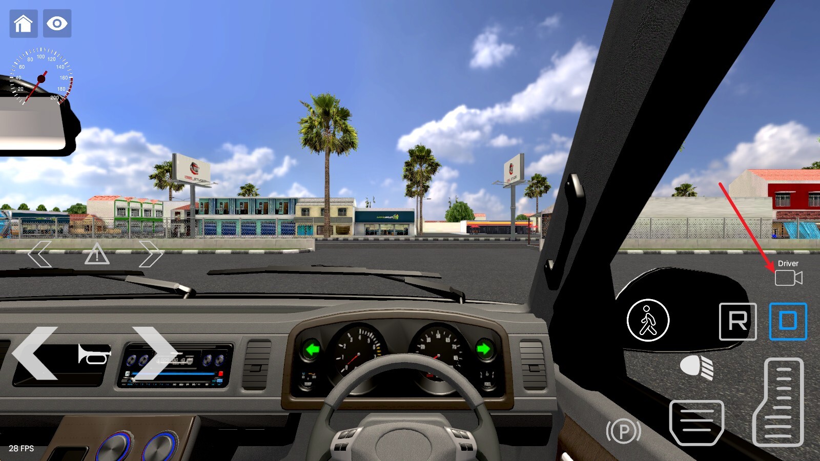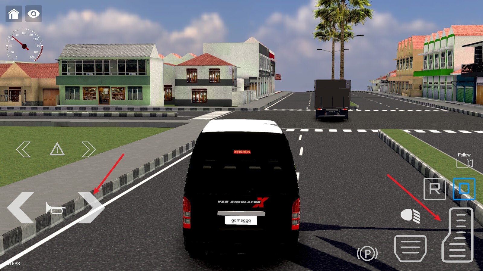 2、右侧的R、D分别对应后退挡和前进挡,点击相应按键就能完成挡位切换。