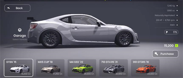 点击主界面的“Garage”进入车库,在这里可以消耗金币来解锁车辆。