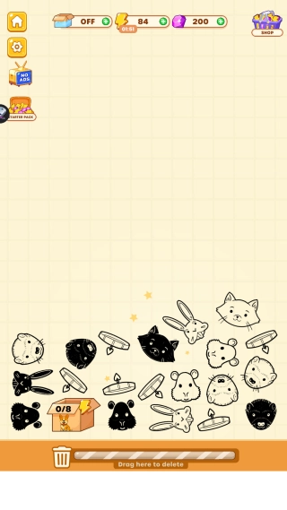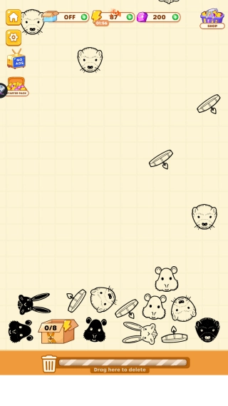 游戏采用手绘风格的美术设计,每一处图案与动画都浸润着浓郁的艺术气息。合并过程中的特效不仅绚烂夺目,更巧妙呼应了艺术创作的特质:色彩交融时会晕染出自然的渐变层次,线条衔接处则呈现出流畅灵动的笔触感。