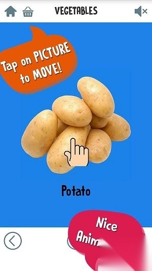 基础操作体系:点击屏幕即可选中食物卡片,滑动屏幕能浏览各类不同类别,长按屏幕可听取语音介绍,借助组合操作来完成认知任务,操作简单直观,助力孩子专注于学习内容。