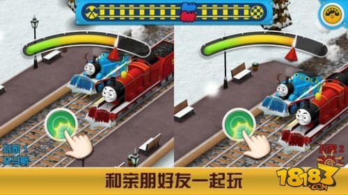 2、在铁道上与愉快的小火车们互动竞赛。