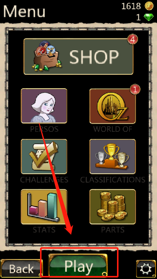 点击“开始”按钮即可直接进入游戏画面;若玩家点击菜单按钮,则能进入任务道具页面,查看各类任务详情并购买所需道具。