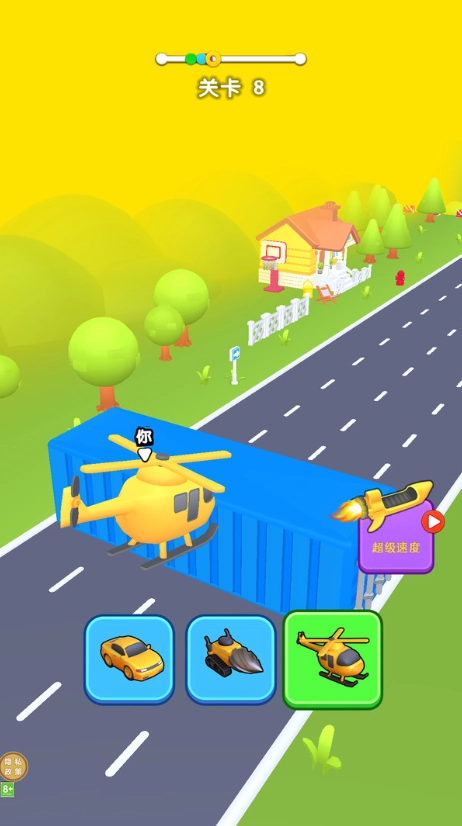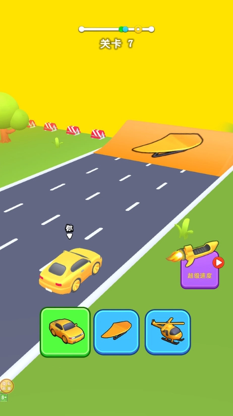 《超级大变幻》是一款主打多形态实时切换的创新跑酷游戏。玩家将操控角色在变幻莫测的赛道上飞速前进,依据前方地形灵活切换形态:碰到楼梯时切换成人形攀爬,进入公路后切换为汽车疾驰,面对水面则切换成快艇破浪,彻底打破传统跑酷的局限,让玩家体验到不同形态带来的速度与激情~