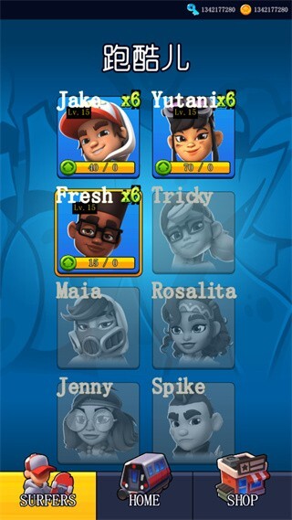 4、点击“SURFERS”可选择自己的人物角色;