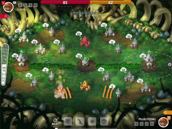 在蘑菇战争中,由A点往B点出兵的操作是单手点A点然后拖到B点松手,但在操作中,是可以单手指按住A点,然后另一指点B点然后松手,开局操作时,在安全的情况下,可以由开局点向好几个点位同时出兵来抢先占领发育的速度。