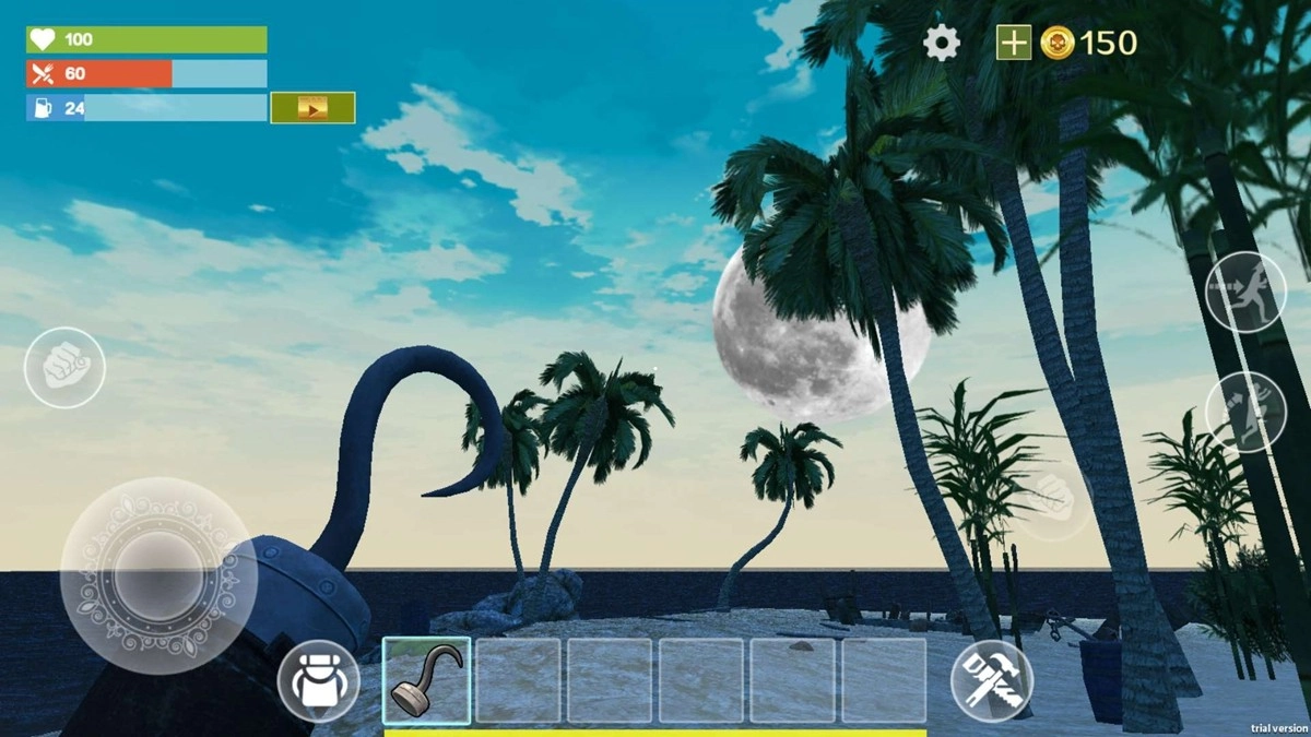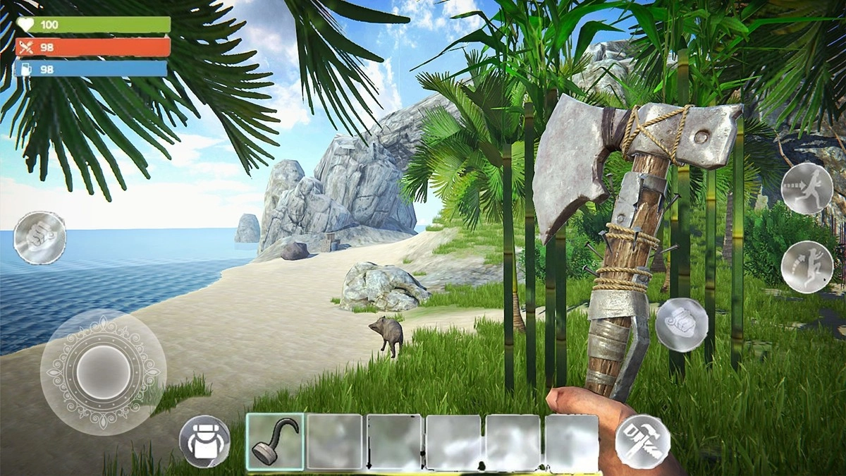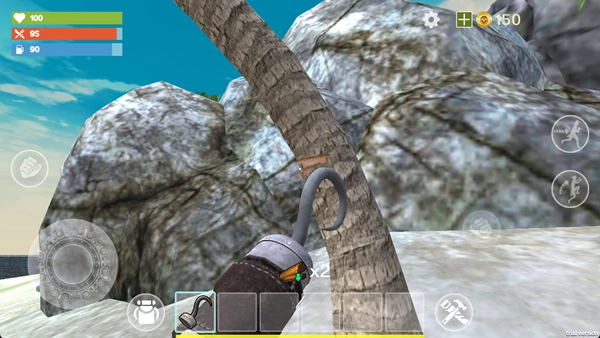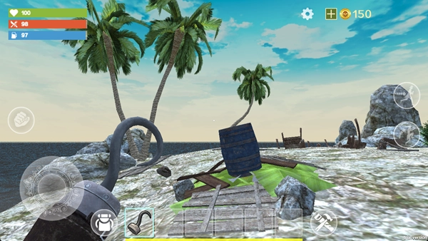 在沙滩区域采集木材、石头这类基础资源,注意避开丛林里的野兽;使用石斧这种简易工具能更高效地收集物资,以便尽快搭建起庇护所。