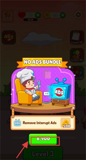 2、界面上方设有倒计时功能,玩家需在限定时间内完成关卡挑战。界面下方则提供道具购买选项,可助力玩家更高效地通关。